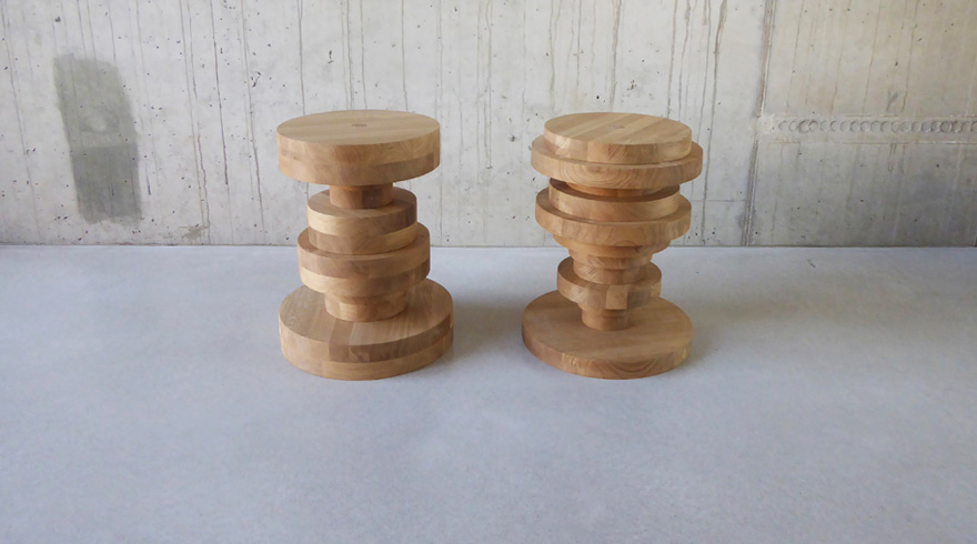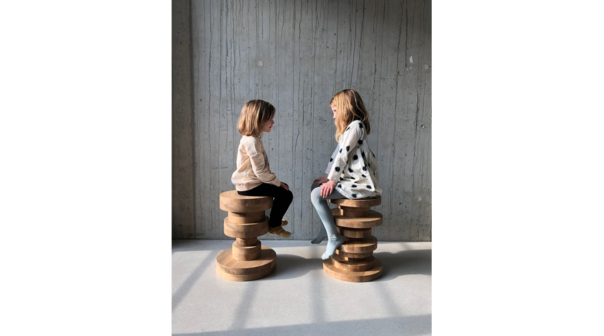 One of the oldest classic in children toys -the rainbow stacker- gets blown up becoming a playful side table or stool.