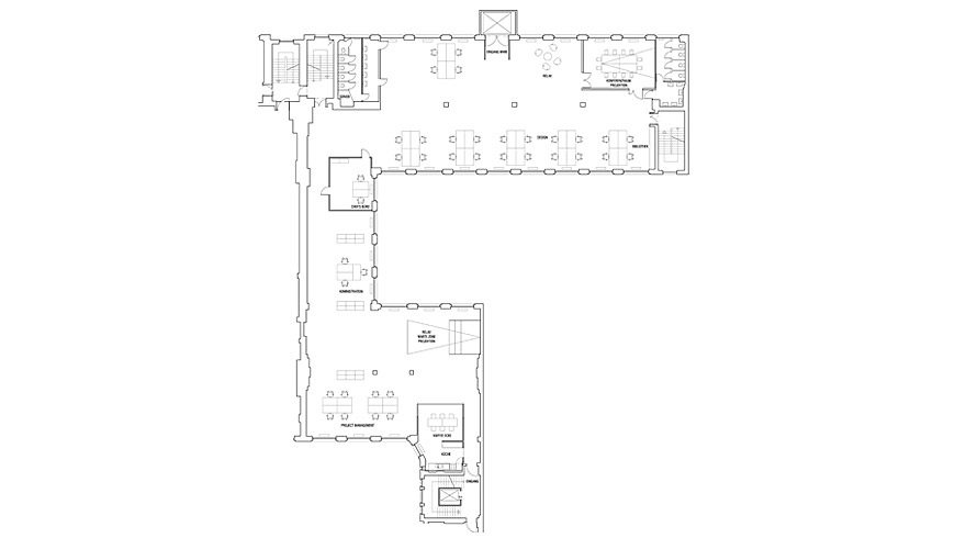 The new office is situated in Berlin Kreuzberg, in an historic industrial courtyard building, in the space of a former printing house.